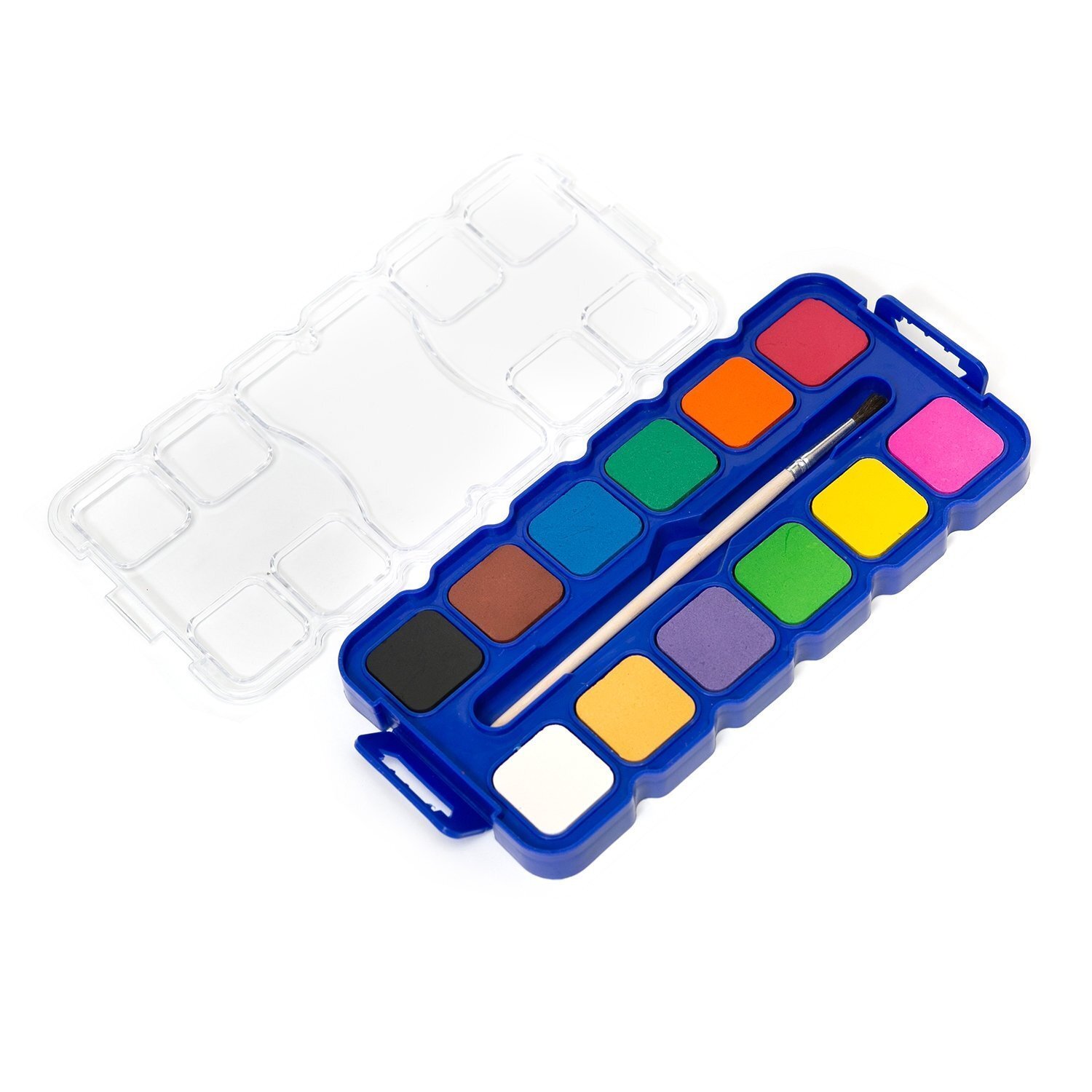 Представляем Вам смываемую медовую акварель, включающую в себя 12 насыщенных цветов. Удобный пластиковый пенал четко фиксирует краску в специальных нишах, также в нем находится специальное отделение для хранения кисточки.