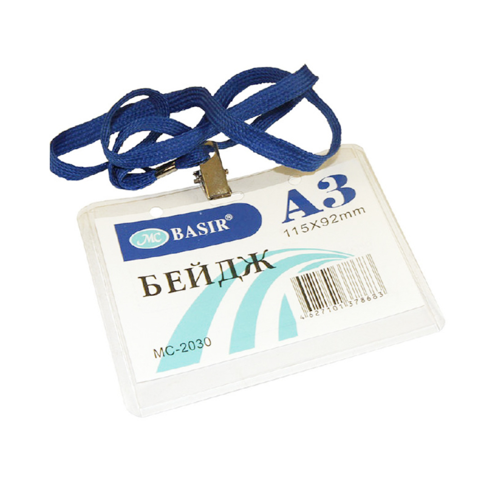 Бейджи: прозрачный пластиковый, имеет шнурок с прищепкой; размер 115*92 мм. В коробке 20 упаковок по 50 бейджей.