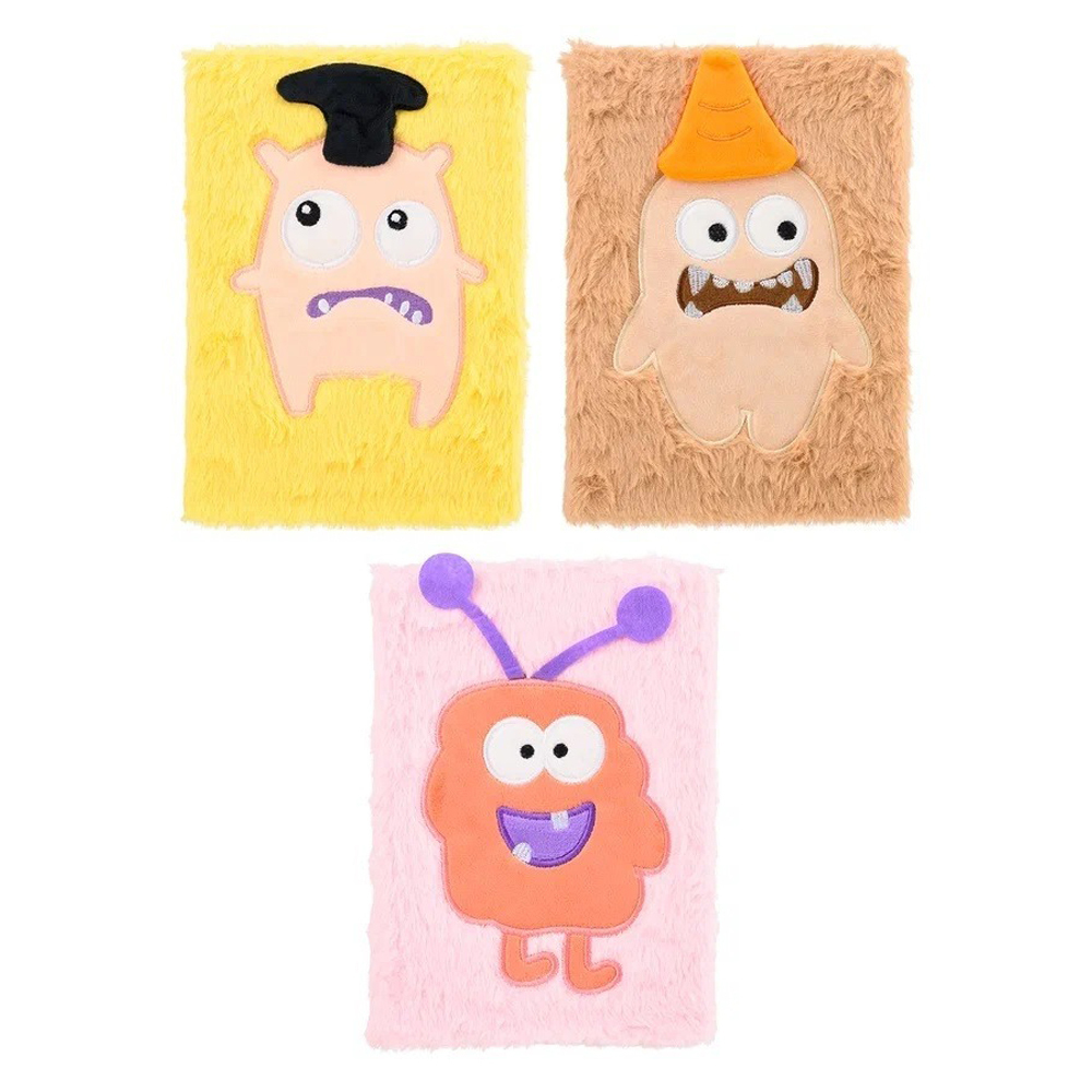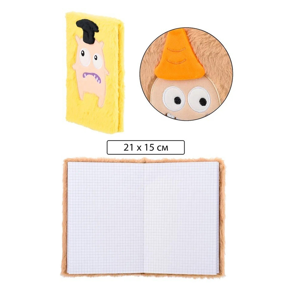 Блокнот: "ВЕСЁЛЫЕ МОНСТРИКИ"; цветная, меховая обложка /ассорти/, с аппликацией; блок-клетка, 80 листов, 21*15 см. В коробке 96 шт.