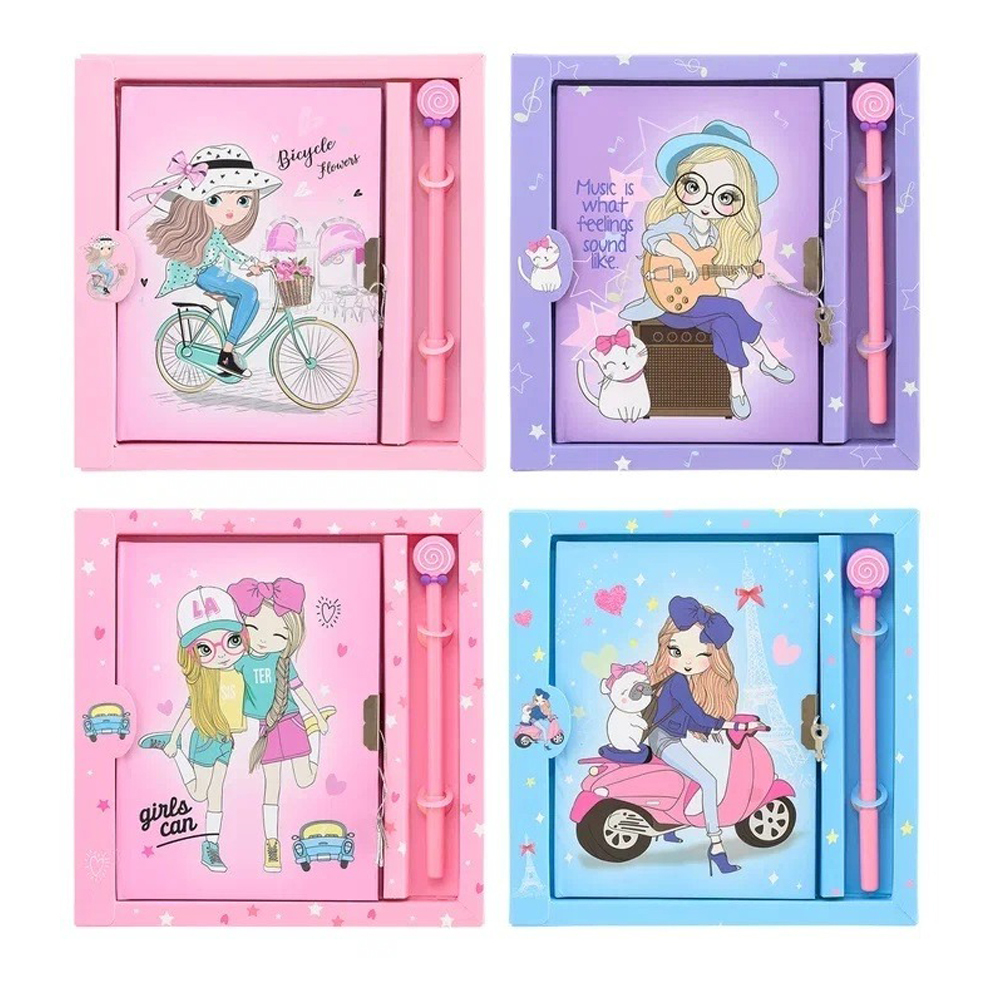 Блокнот детский+замочек+гелевая ручка с наконечником-леденец: "МОДНИЦА"; в подарочной упаковке /21*20,5 см/; яркая, цветная обложка 7БЦ /ассорти/, блок-клетка 48 л.; 18*13,2 см. В коробке 144 шт.