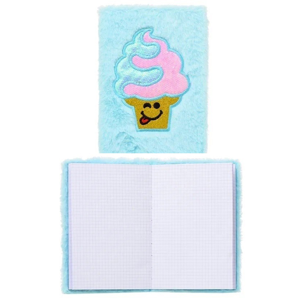 Блокнот: "ДЕСЕРТ"; цветная, меховая обложка /ассорти/, с аппликацией; блок-клетка, 80 листов, 21*14,5 см; в пластиковой упаковке на подложке. В коробке 88 шт.