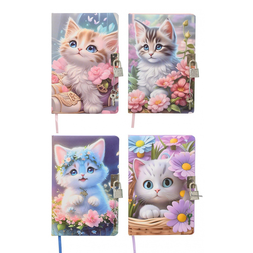 Блокнот детский + замочек: "КОТЯТА"; цветная обложка с рисунком /ассорти/, внешняя сторона блока с цветным напылением; блок-клетка 1 офсет (прошитый) с ляссе, 80 листов; 19*12,5 см. В коробке: 72 штук.