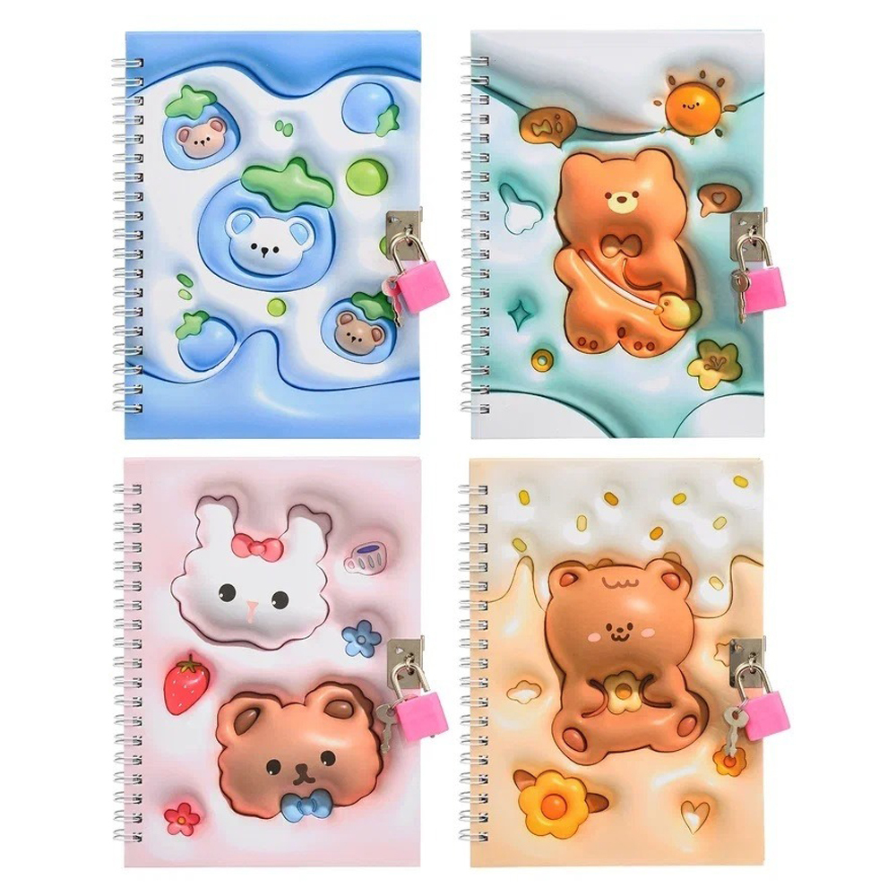 Блокнот детский+замочек: "МИШКИ"; цветная 7БЦ обложка с рисунком 3D /ассорти/, блок-клетка, на гребне, 48 л.; 15*11 см. В коробке: 192 штук.