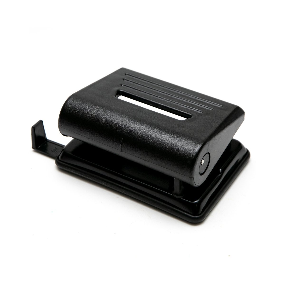 Дырокол пластиковый оснащен выдвижной ограничительной линейкой с точной шкалой форматов бумаги. Пробивная мощность до 20 листов. Диаметр отверстия небольшой, всего 6 мм. Удобный резервуар для конфетти. Пластиковая подошва не царапает поверхность стола. Корпус выполнен в чёрном цвете.