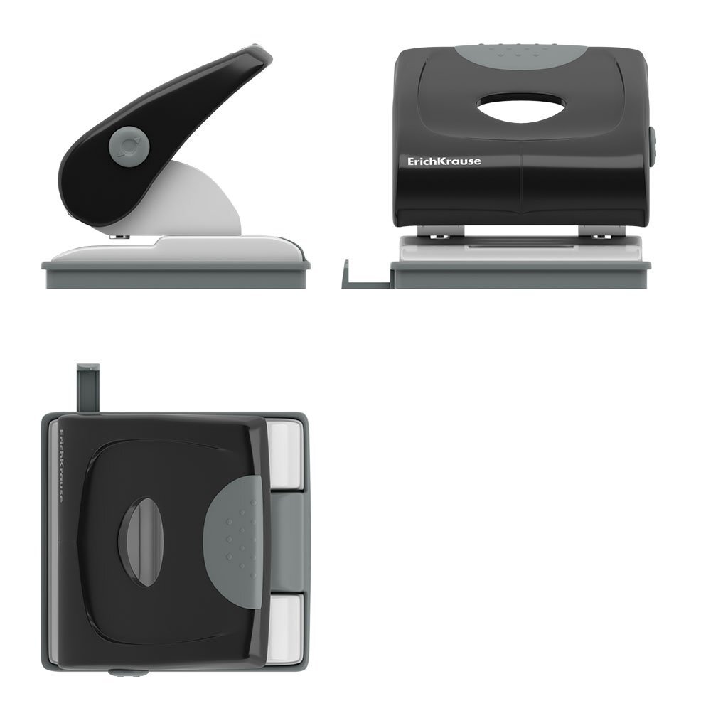 Дырокол с резервуаром для конфетти и линейкой для выбора форматов. Mеханизм изготовлен из высококачественной стали. На корпусе предусмотрена противоскользящая резиновая вставка. Имеет встроенный фиксатор, позволяющий хранить дырокол в сложенном положении.