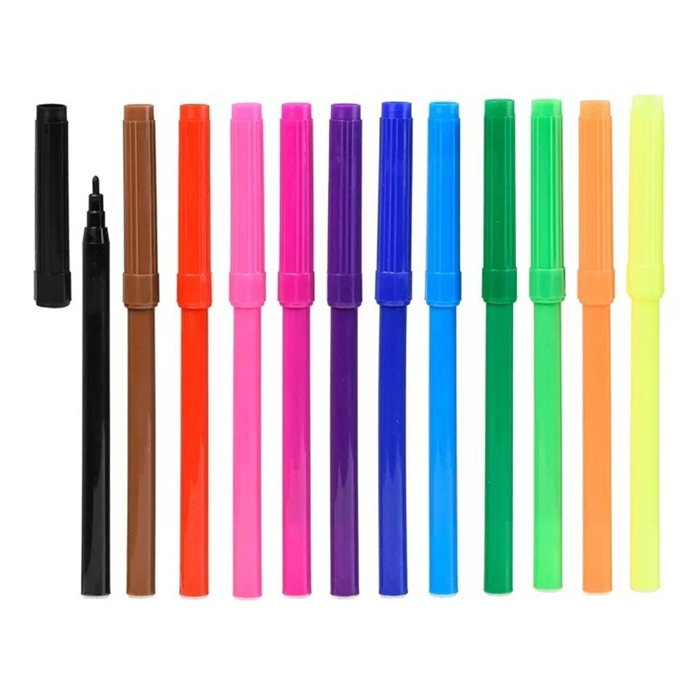 Набор фломастеров: "КРОКОДИЛ"; цветной корпус, белый полупрозрачный, вентилируемый колпачок, упаковка с европодвесом, 12 цветов (длина 14,5 см, 0,8 mm). В коробке 144 набора по 12 фломастеров.
