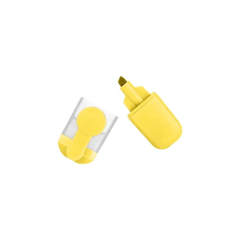 Текстовыделитель в канцелярском наборе для детей идет 4-х различных цветов: розовый, фиолетовый, желтый, голубой. А его длина – 6 см.