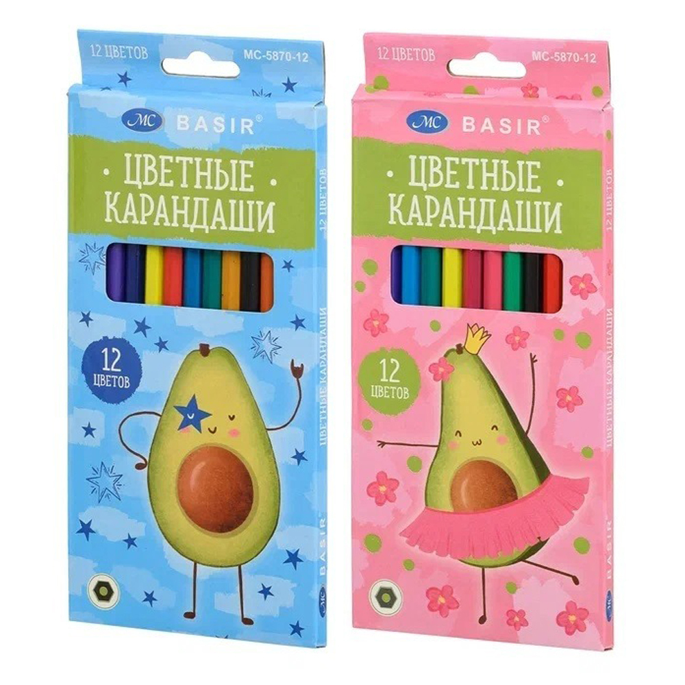 Набор цветных карандашей: "АВОКАДО"; пластиковые; шестигранный корпус; цветная упаковка с рисунком /ассорти/; 12 цветов.