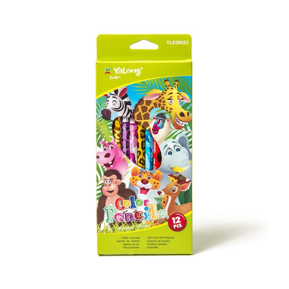 Набор цветных карандашей, 12 цветов. Яркие цвета, мягкий грифель. Материал - дерево. Классический шестигранный корпус. Картонная коробка с европодвесом.