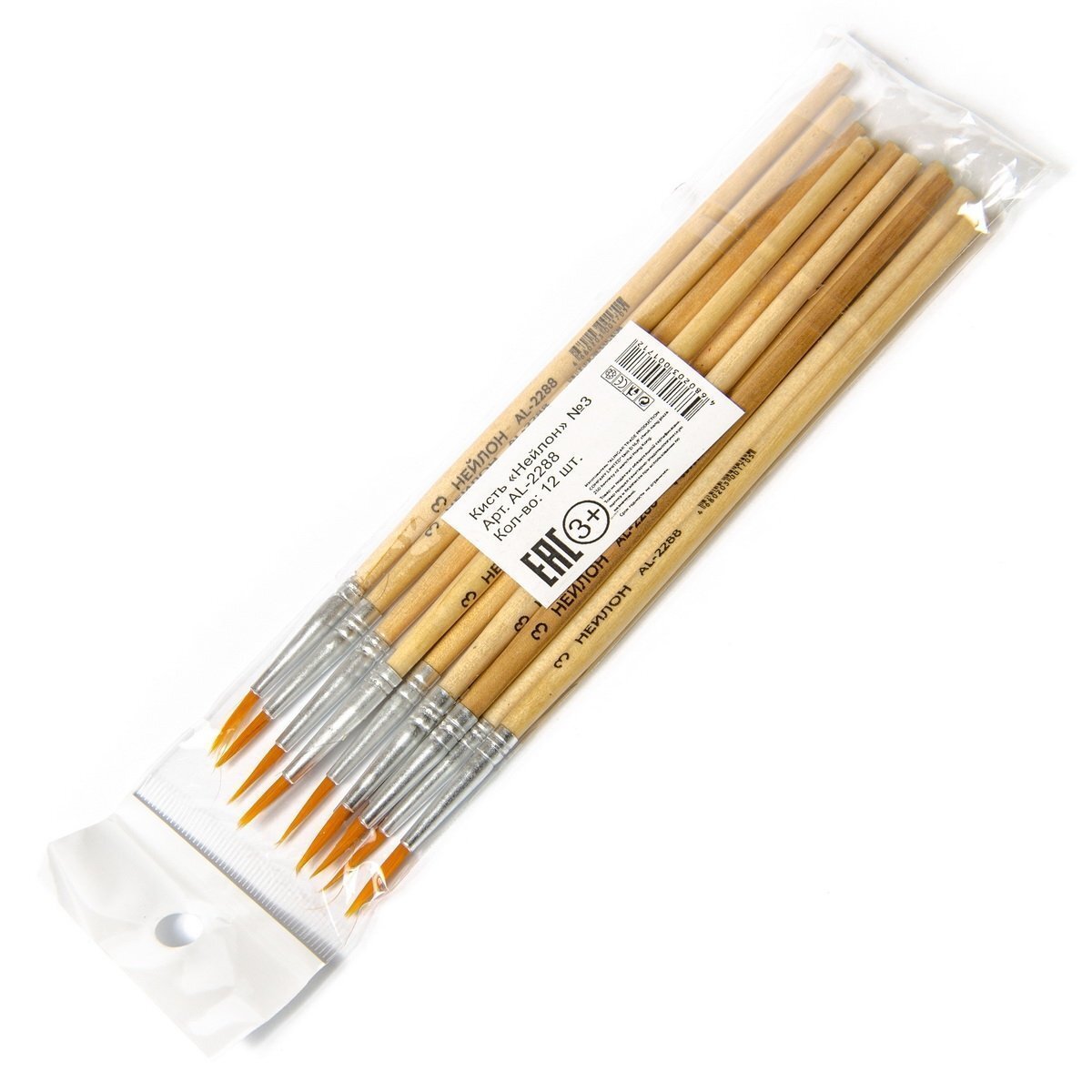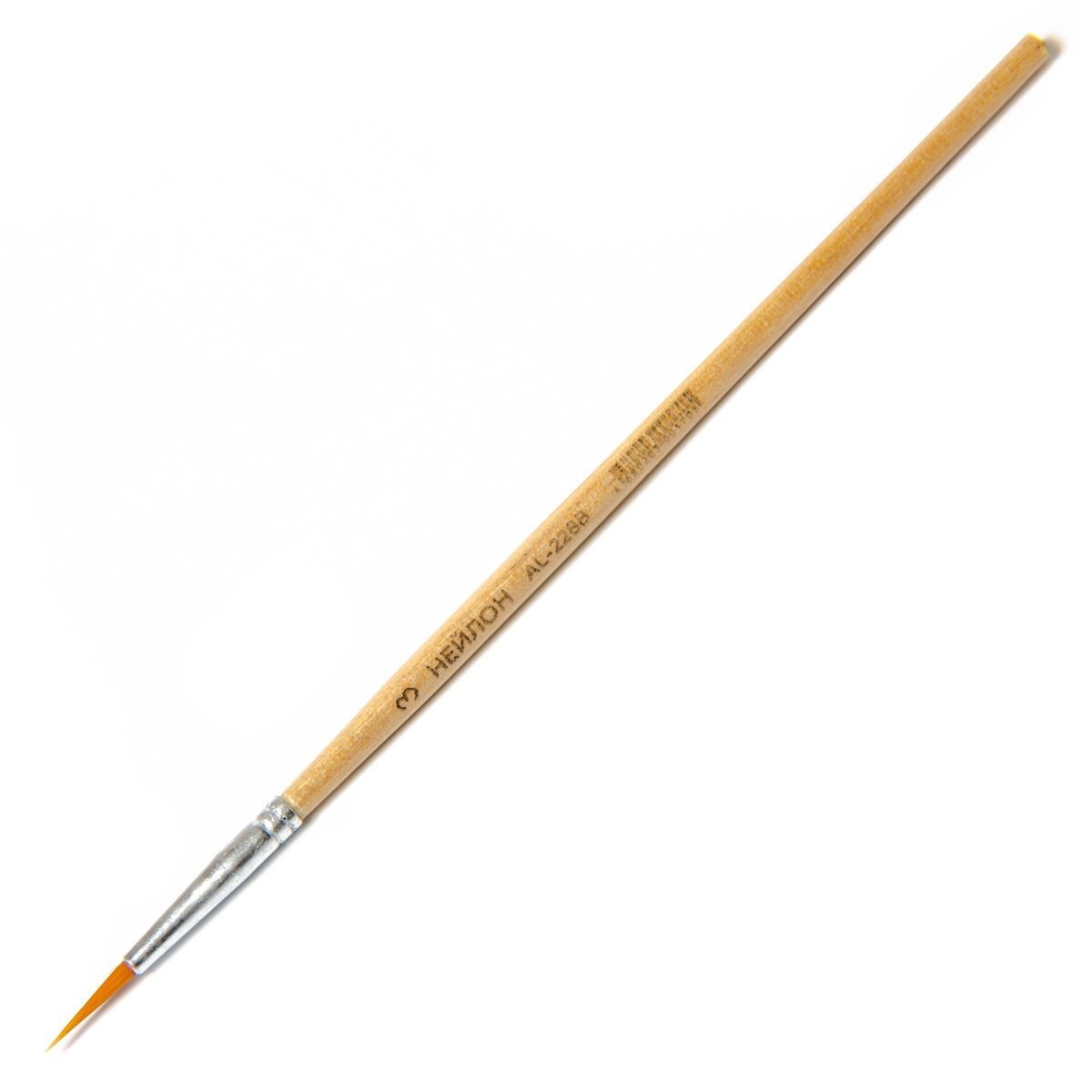 Кисть нейлон, круглая. С деревянной ручкой покрытой прозрачным лаком.