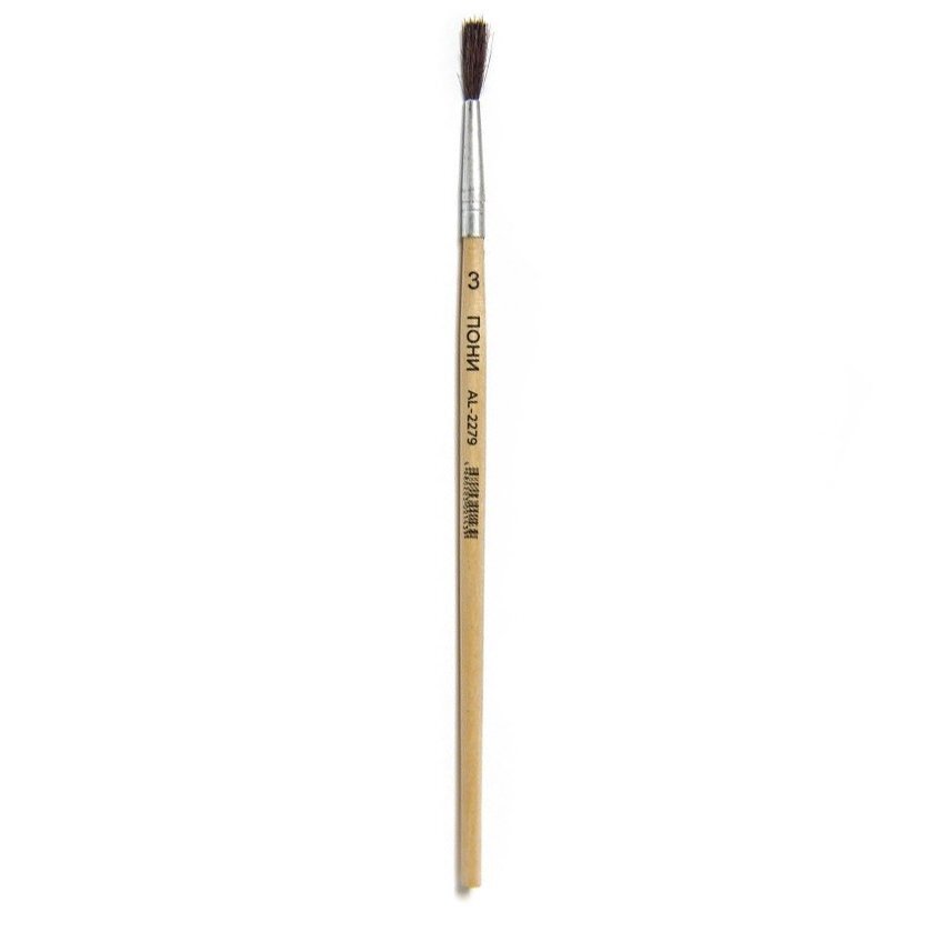 Кисть из волоса пони хорошо впитывает и отдает краску. Удовлетворительно собирается в конус, держит форму, но не достаточно упруга. Волос относится к оформительской группе, т.е не имеет острой вершинки, в конус собирается за счет формы рабочей части. Волос пони бывает черного и коричневого цвета.