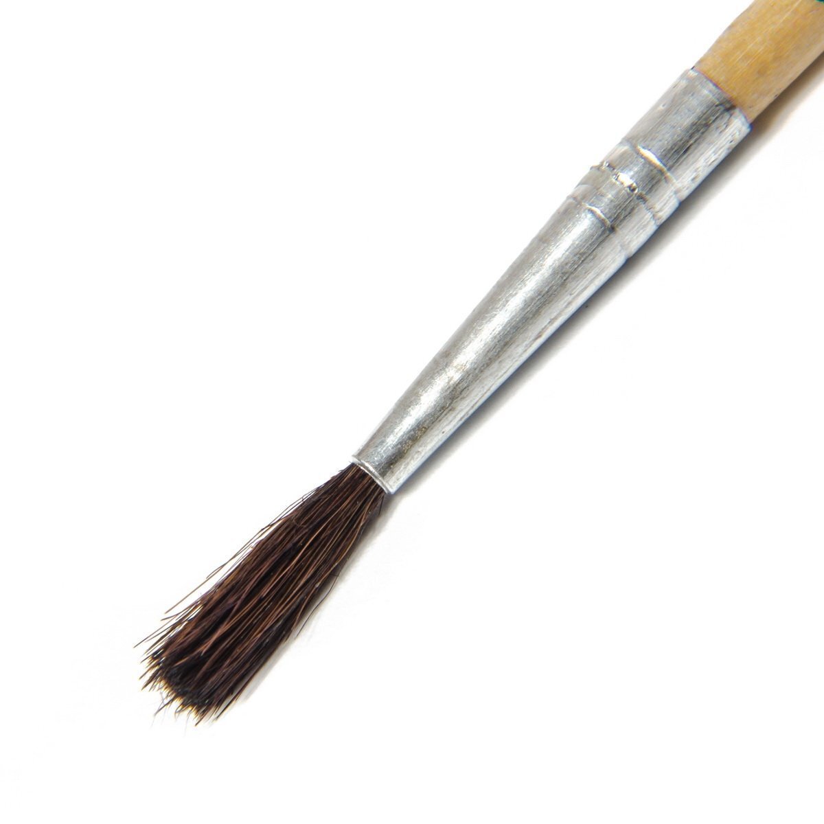 Предназначена для работы водорастворимыми красками: акварелью, темперой, гуашью. Ручка кисти деревянная пропитанная, обойма жестяная шовная.
