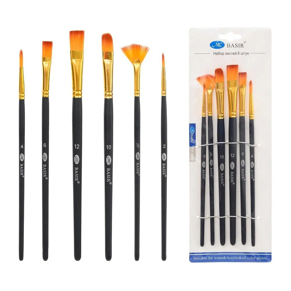 Набор кистей: состоит из 6 художественных кистей (круглые и плоские №2,3/0,4,6,10,12), изготовленных из нейлона.