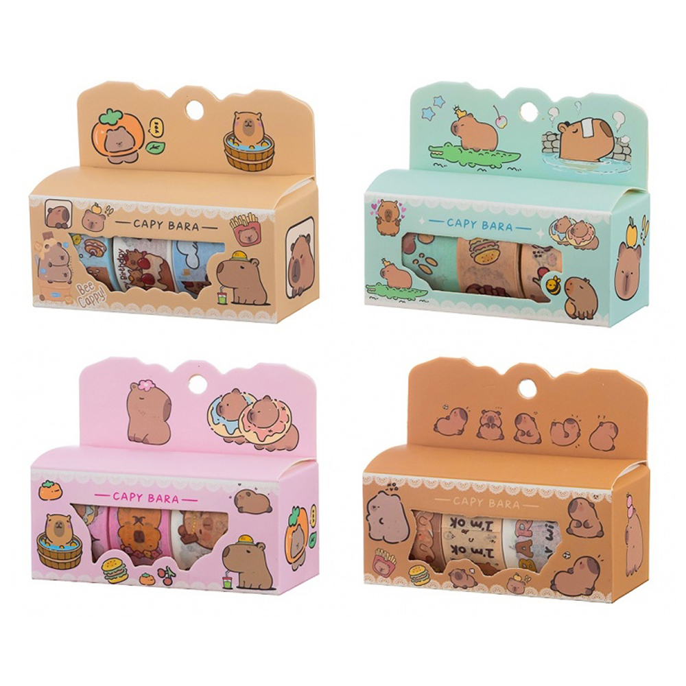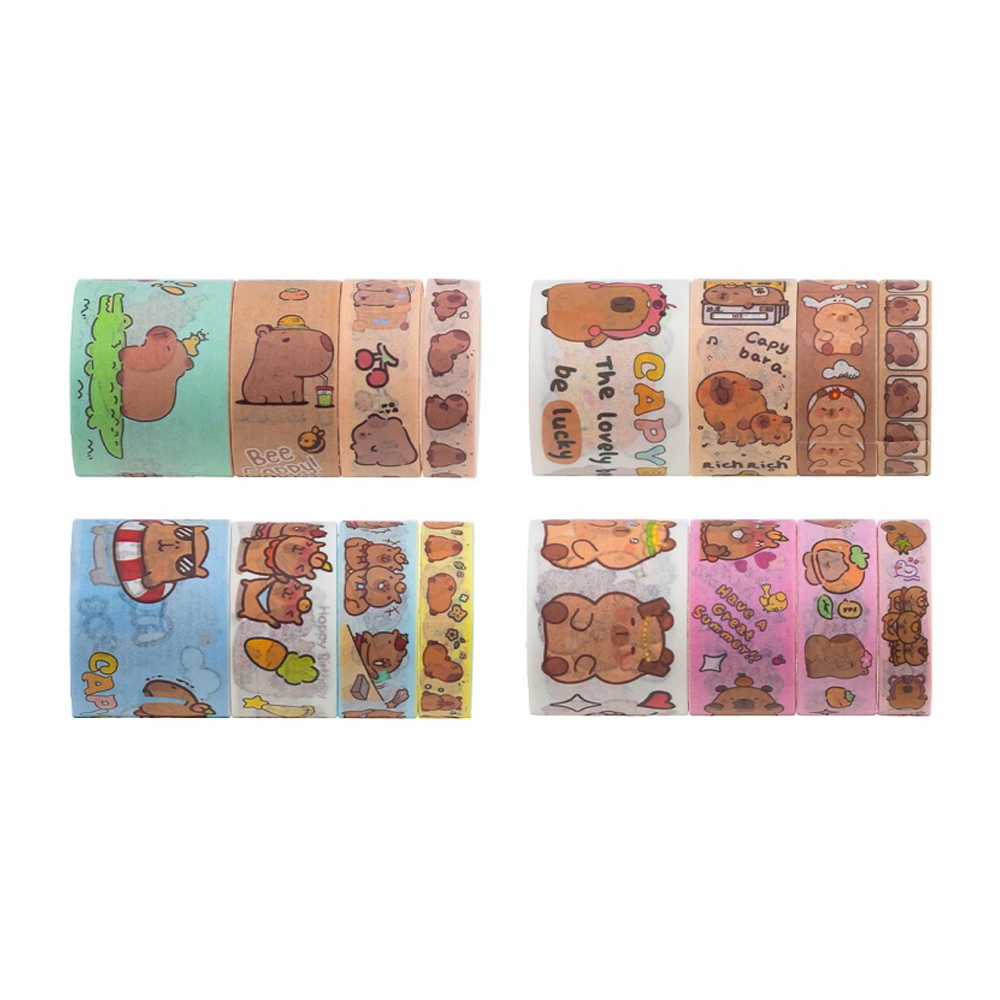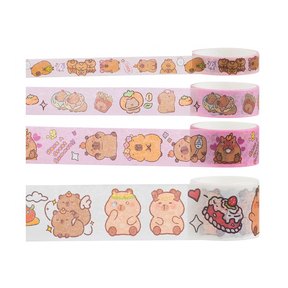 Скотч декоративный: "КАПИБАРА"; для творчества; бумажный, цветной с рисунком /ассорти/; в упаковке 4 штуки, размеры ширина- 15mm, 10mm, 20mm, 30mm. В коробке: 576 наборов.