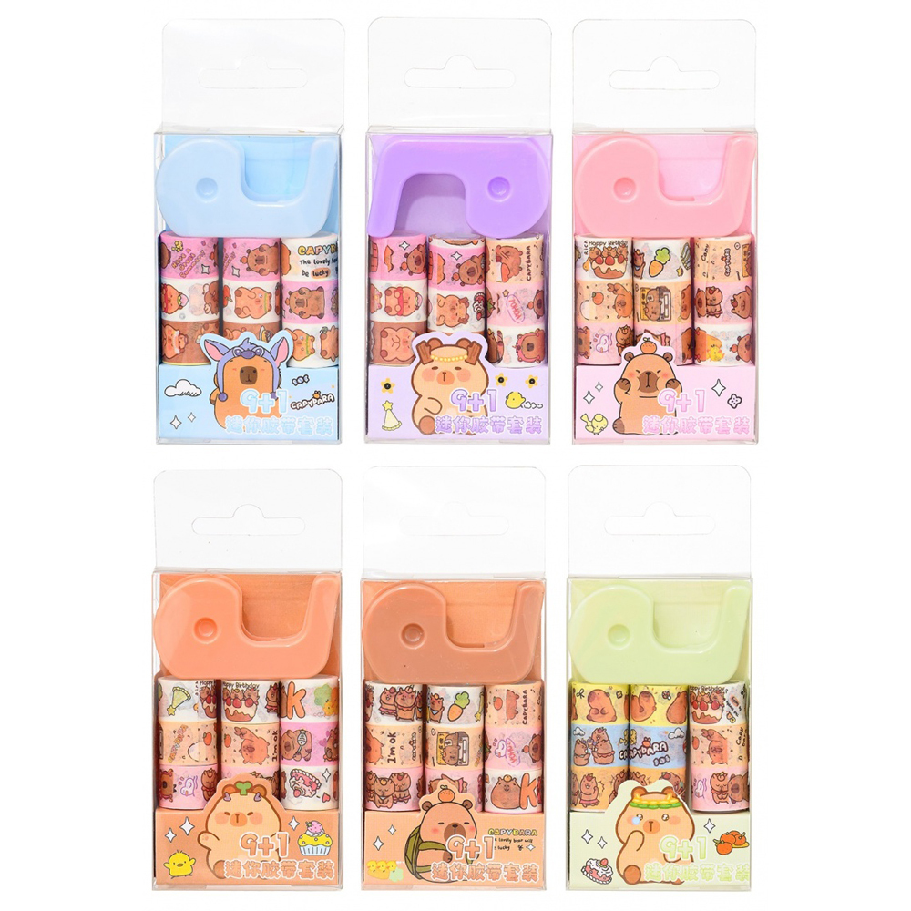 Скотч детский "КАПИБАРА"бумажный декоративный скотч 9 штук+диспенсер, пластиковая упаковка с европодвесом /8,5*5 см/. В коробке: 720 наборов.