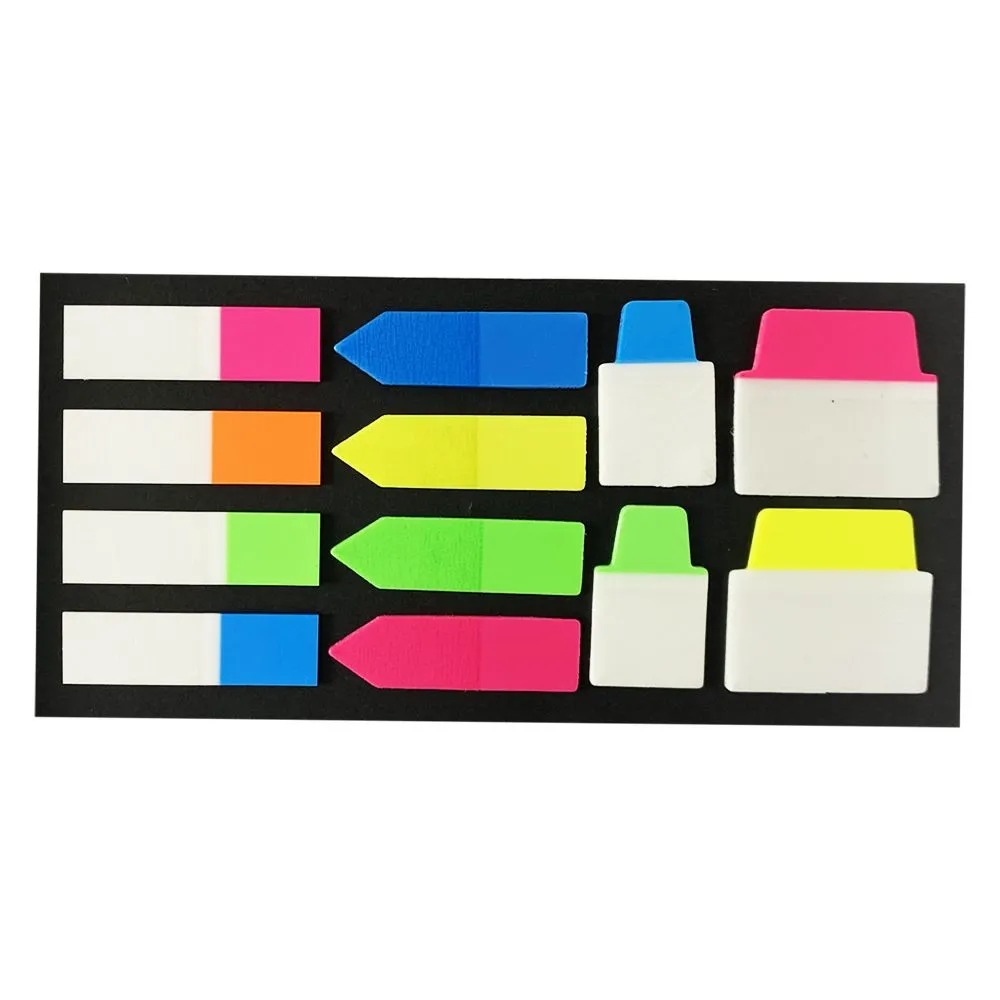 Клейкие закладки пластиковые имеют прямоугольную форму, форму стрелочки и квадрата что делает их удобными для использования в учебниках и документах. Они легко приклеиваются и отклеиваются, не оставляя следов на страницах.