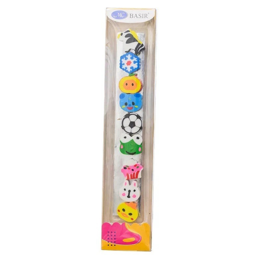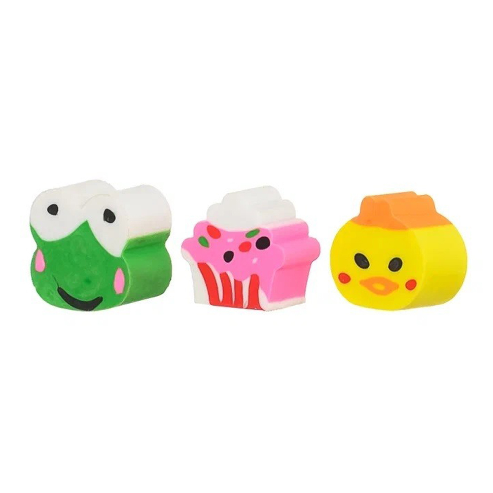 Ластик-насадка для карандашей: набор "АССОРТИ"; цветные, в форме животных, десерта, мяча; в пластиковой упаковке /25*5,2 см/ по 9 штук, размер 2,3*2 см.
