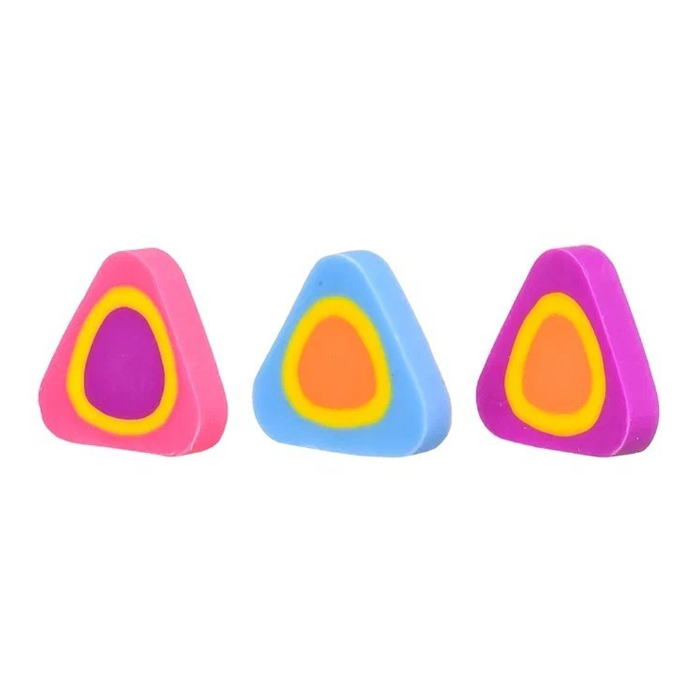Ластик: набор-ластиков "ТРЕУГОЛЬНИК"; яркий цветной /ассорти/; в пластиковой упаковке /25*5,2 см/ по 6 штук, размер 3,2*3,5 см.