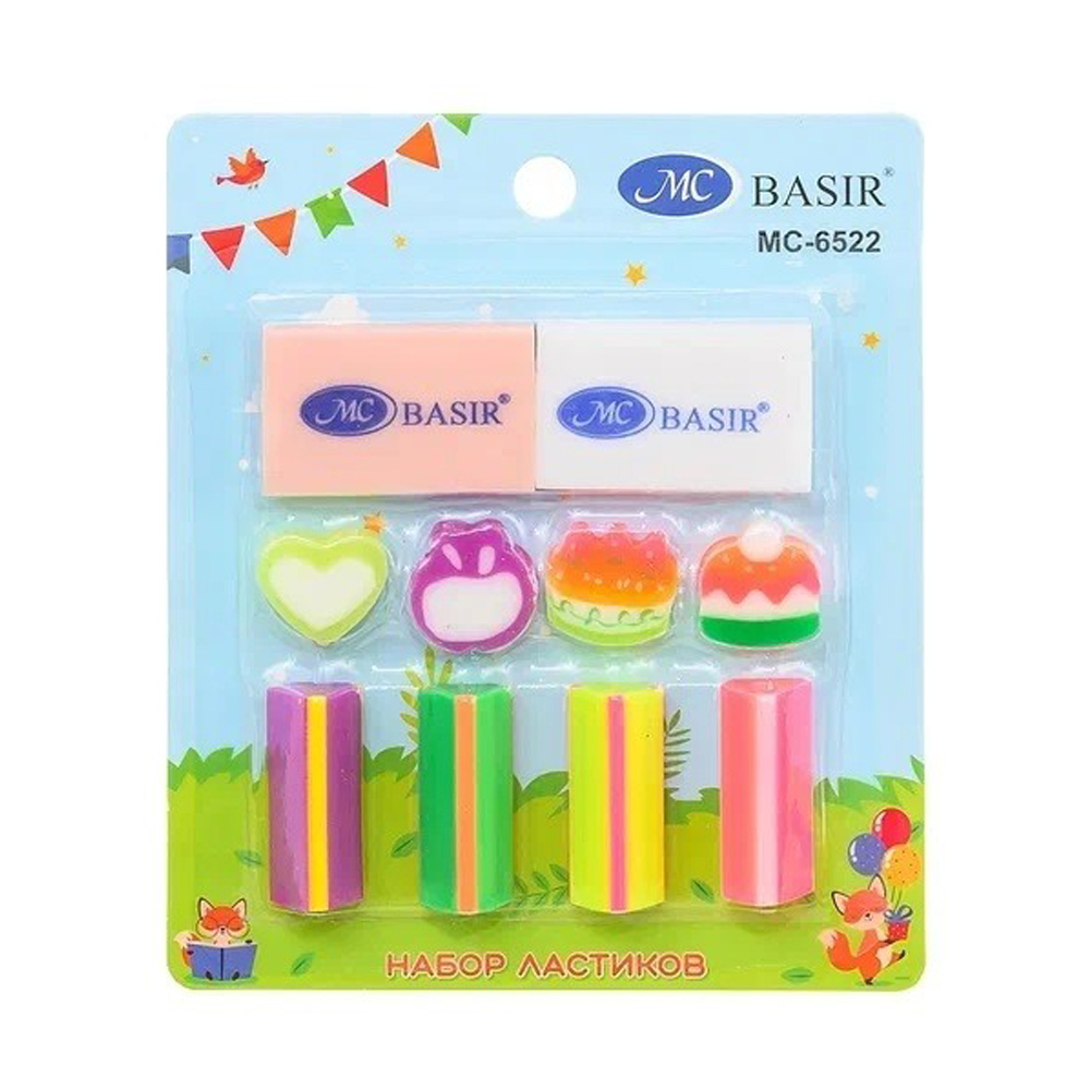 Ластик: "АССОРТИ"; цветной, различной формы /4,7, 2,7, 1, 7 см/, в блистере на картонной подложке /12*10 см/ по 10 штук. Количество в упаковке: 20 штук.