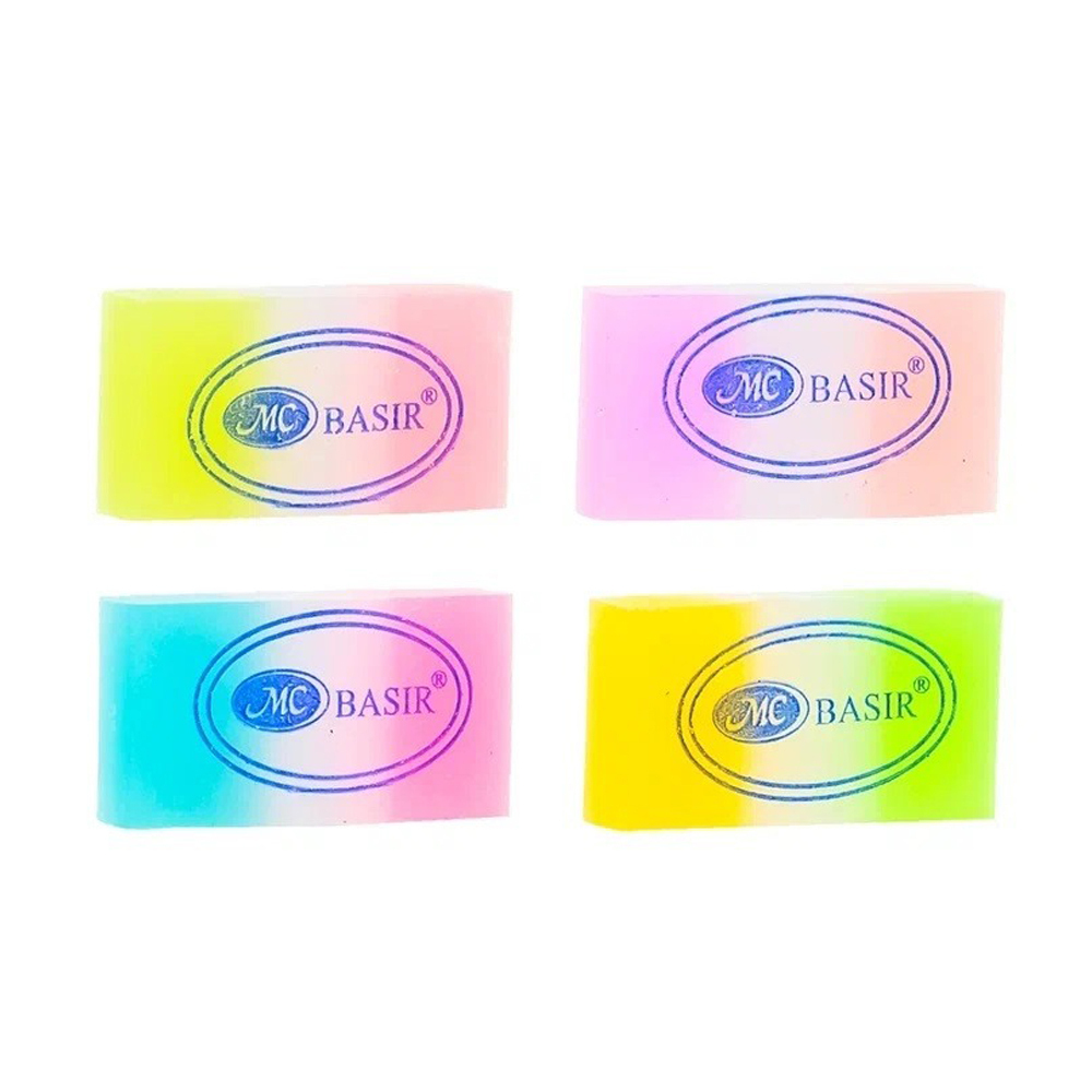 Ластик: "COLOR"; цветной радужный, прямоугольной формы /4,4*2,2 см/, в блистере на картонной подложке /13,7*6.8 см/ по 4 штуки. Количество в упаковке: 20 штук.