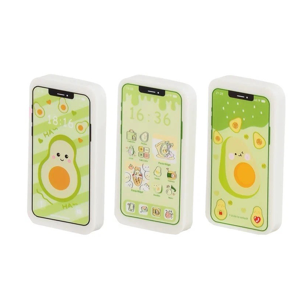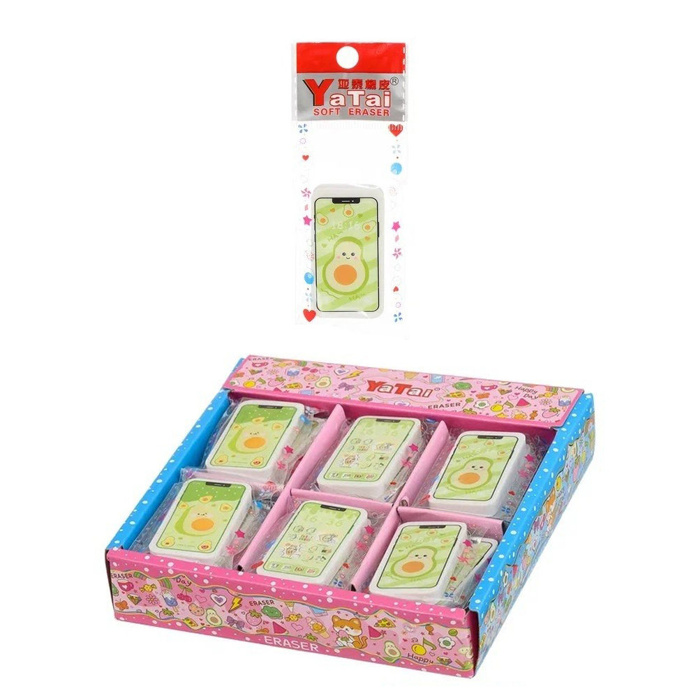 Ластик: "Сотовый телефон /авокадо/ "; мягкий, белого цвета с рисунком, в индивидуальной упаковке, размер 5,2*2,7 см. Количество в упаковке: 30 штук.