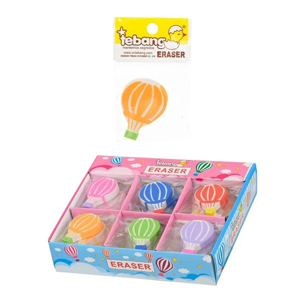 Ластик: "ВОЗДУШНЫЙ ШАР"; мягкий, фигурный белого цвета с рисунком, в индивидуальной упаковке, размер 4,7*3,2 см. Количество в упаковке: 30 штук.