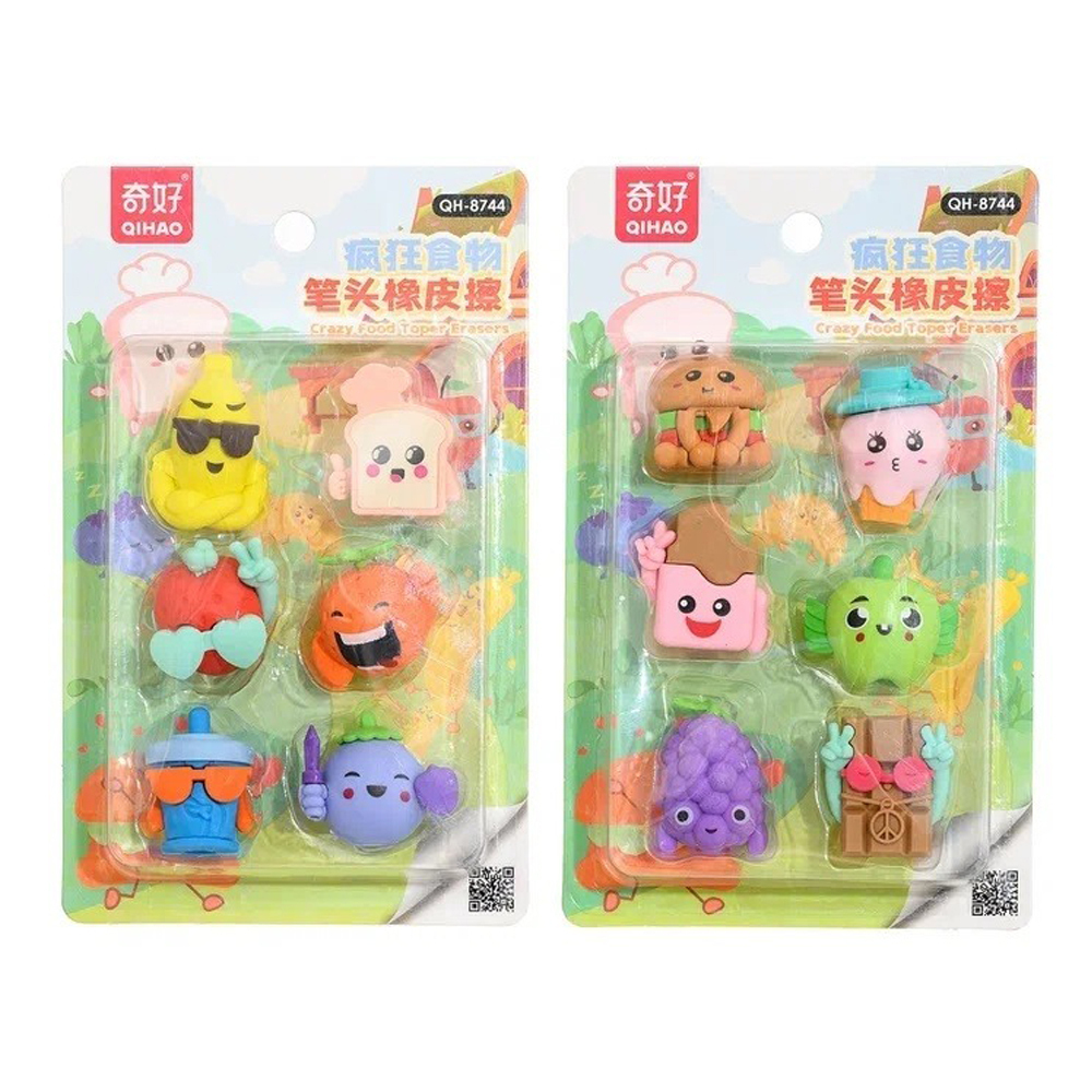 Ластик-насадка: "ВЕСЁЛЫЕ ФРУКТЫ, FOOD"; выполнен в форме фруктов и ягод /ассорти/, в блистере на картонной подложке /17*10,5 см/ по 6 шт. Количество в упаковке: 6 шт.Количество в коробке: 24 шт.