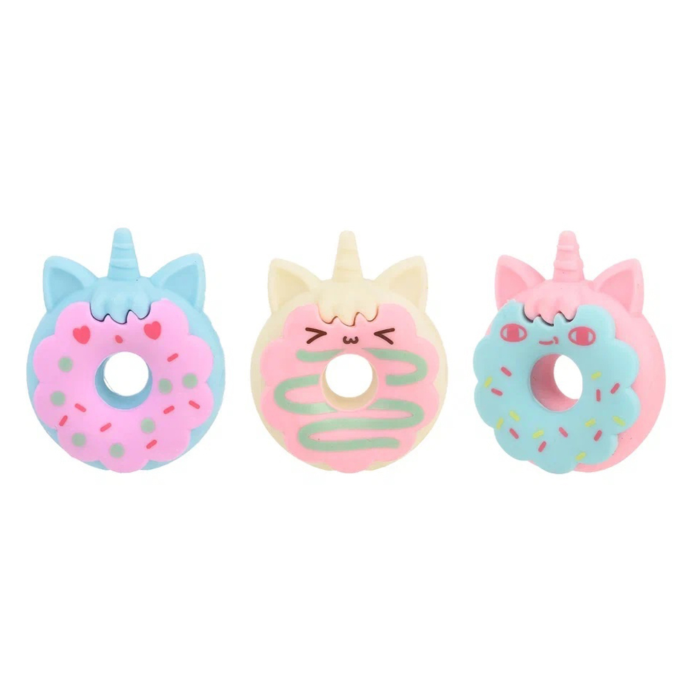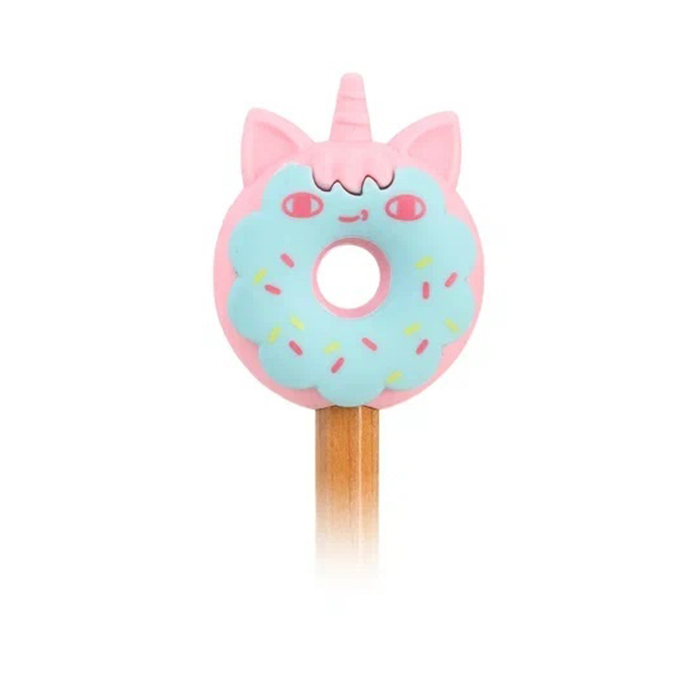 Ластик /насадка для карандаша/: "ПОНЧИК mini"; выполнен в форме пончика-единорожки с рисунком (диаметр 3 см) ассорти, в пластиковой упаковке /по 3 шт/ с европодвесом /11,5*5,5 см/. Количество в коробке: 432 штук.