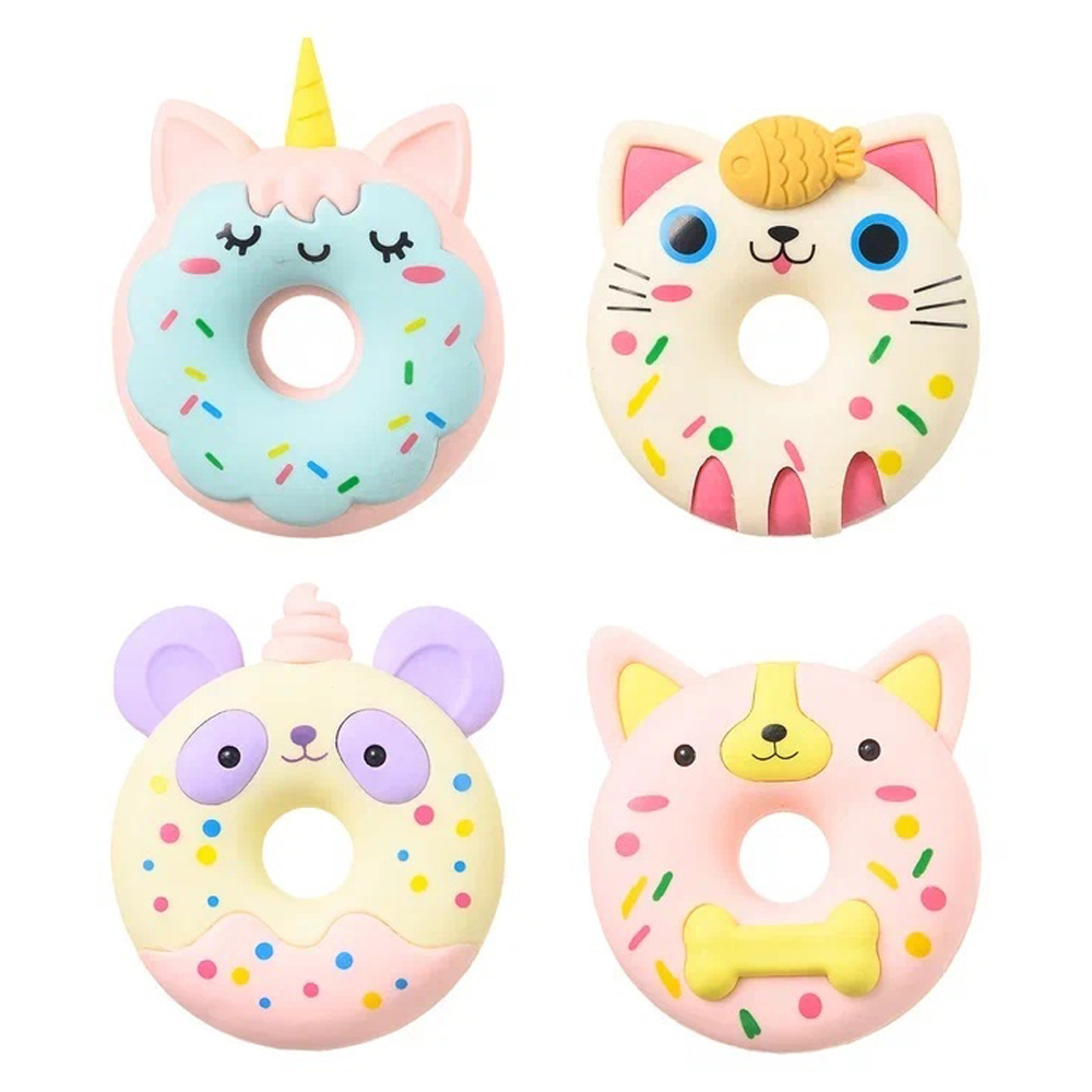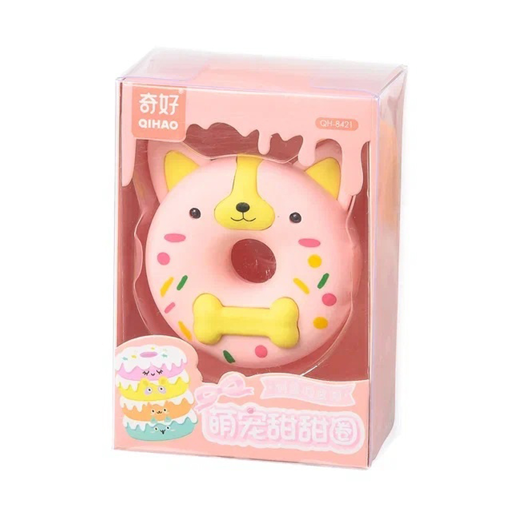 Ластик-игрушка /конструктор/: "ПОНЧИК"; выполнен в форме пончика с рисунком(диаметр 6 см) ассорти, в пластиковой упаковке с европодвесом /10,5*7,2 см/. Количество в коробке: 144 штук.