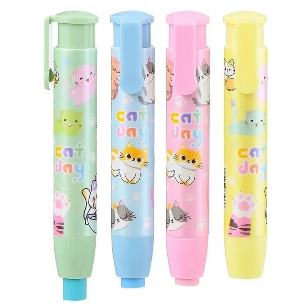 Каждый школьный ластик в комплекте идет в одном из четырех вариантов оформления корпуса, однако выбрать определенный цвет невозможно – это добавляет элемент сюрприза при покупке. Ластик в цвет корпуса выглядит стильно и современно, а его дизайн с котиками наверняка понравится не только детям, но и взрослым любителям милых аксессуаров.