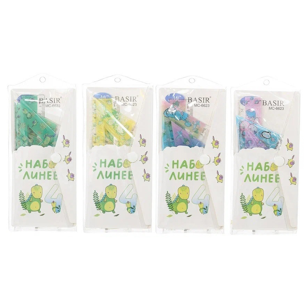 Набор линеек: "DINO"; 4 предмета: пластиковые с рисунком; 2 треугольника, транспортир, линейка 15 см; упаковка ПВХ-конверт на кнопке. В упаковке: 40 шт.
