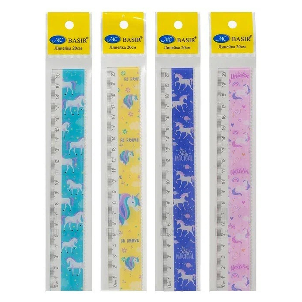 Линейка: "ЕДИНОРОГ "; пластиковая, с рисунком-единорога /ассорти/, 20 см. В упаковке: 24 шт.