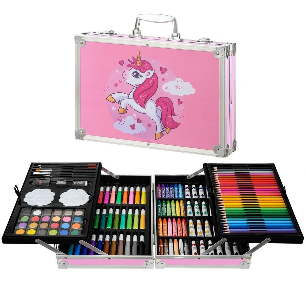 Набор для детского творчества: кейс с замочками, /розовый цвет/, с ручкой и элементами металла; 145 предметовВ коробке 6 шт.