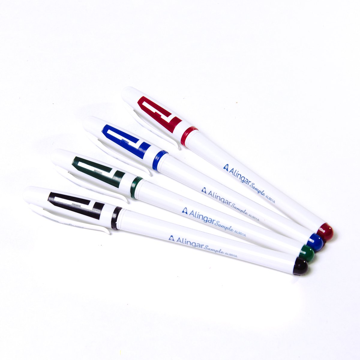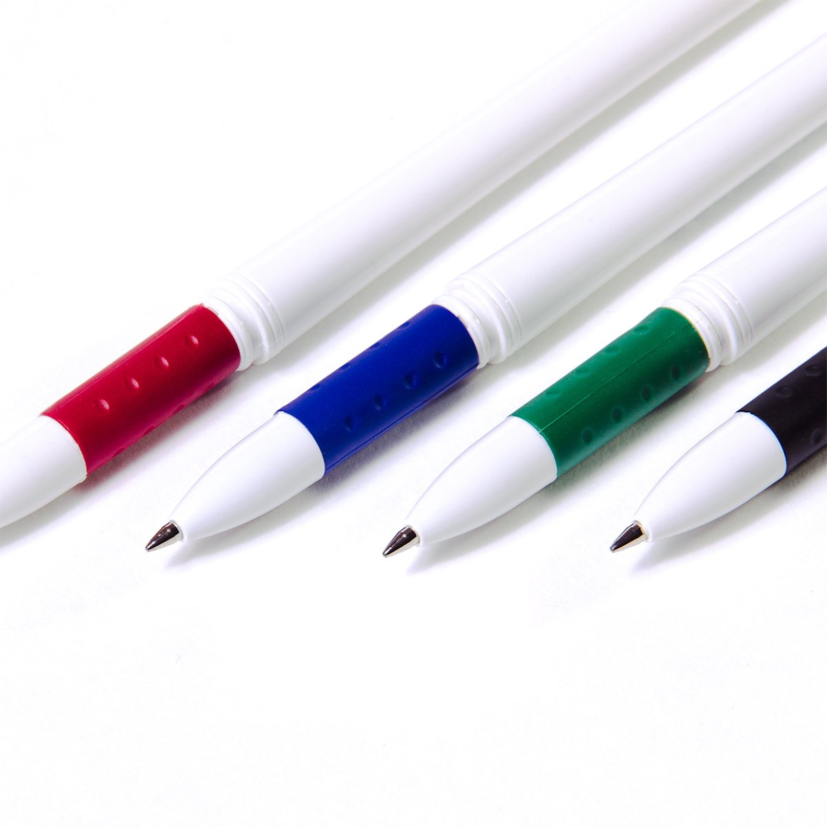 Ручка имеет пишущий узел толщиной 0,55 мм. Корпус изделий выполнен из пластика.
