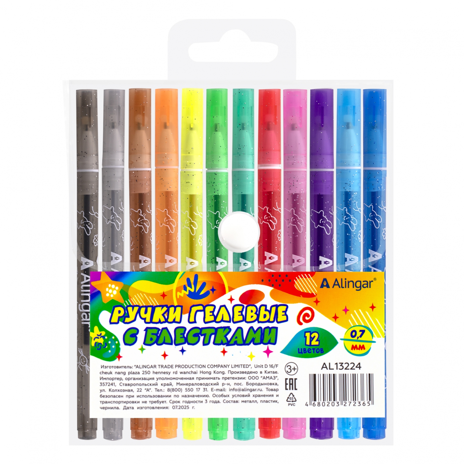 Ручка гелевая, Basir, цветные чернила, серия "Неон - пастель", ароматизированные, с блёстками, 12 шт