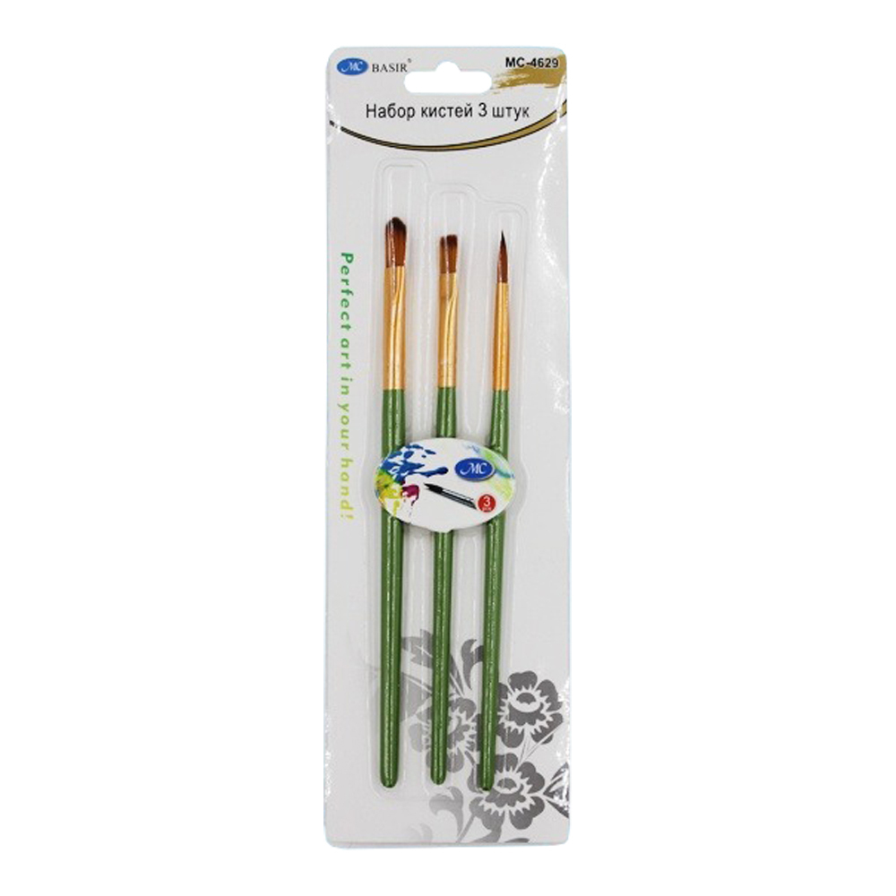 Набор кистей: состоит из 3 художественных кистей (круглая-1, плоские-2), изготовленных из нейлона. Количество наборов в коробке: 288 штук.