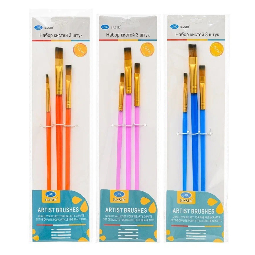 Набор кистей: состоит из 3 художественных кистей (плоские), изготовленных из нейлона. Количество наборов в коробке: 288 штук.