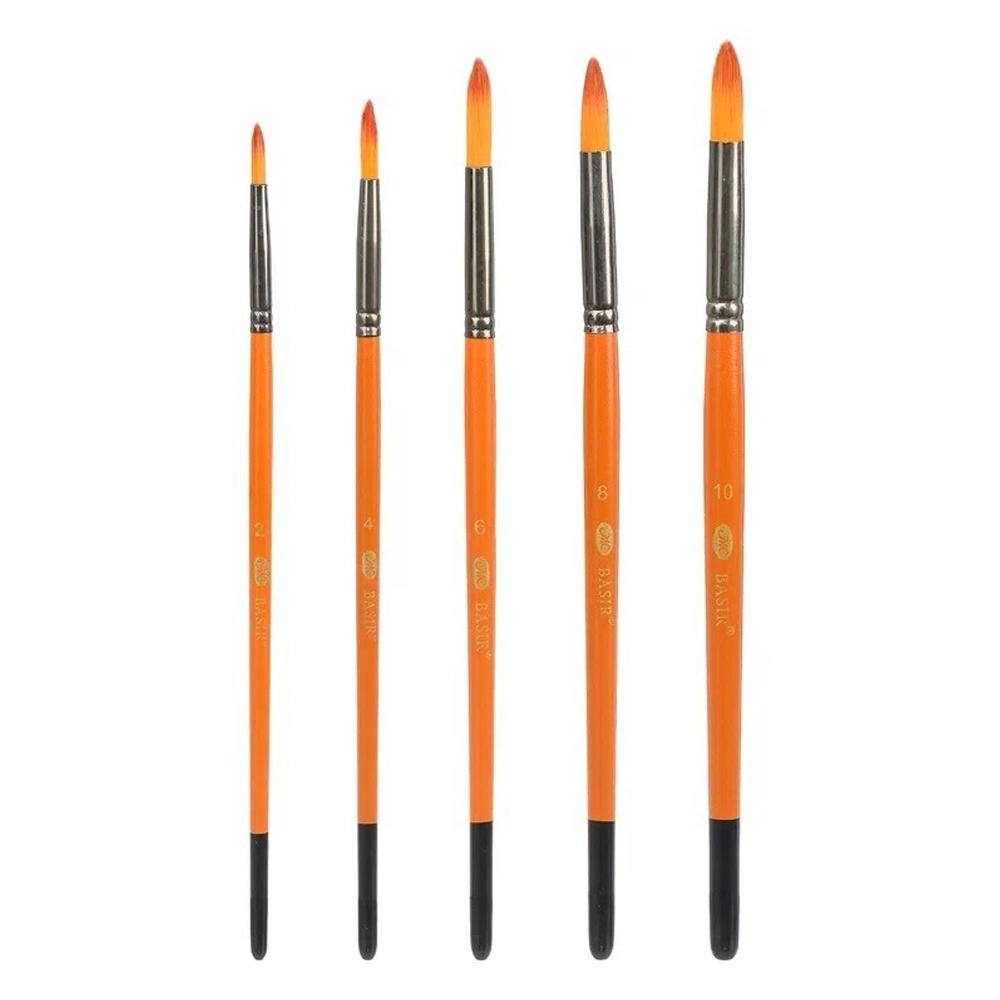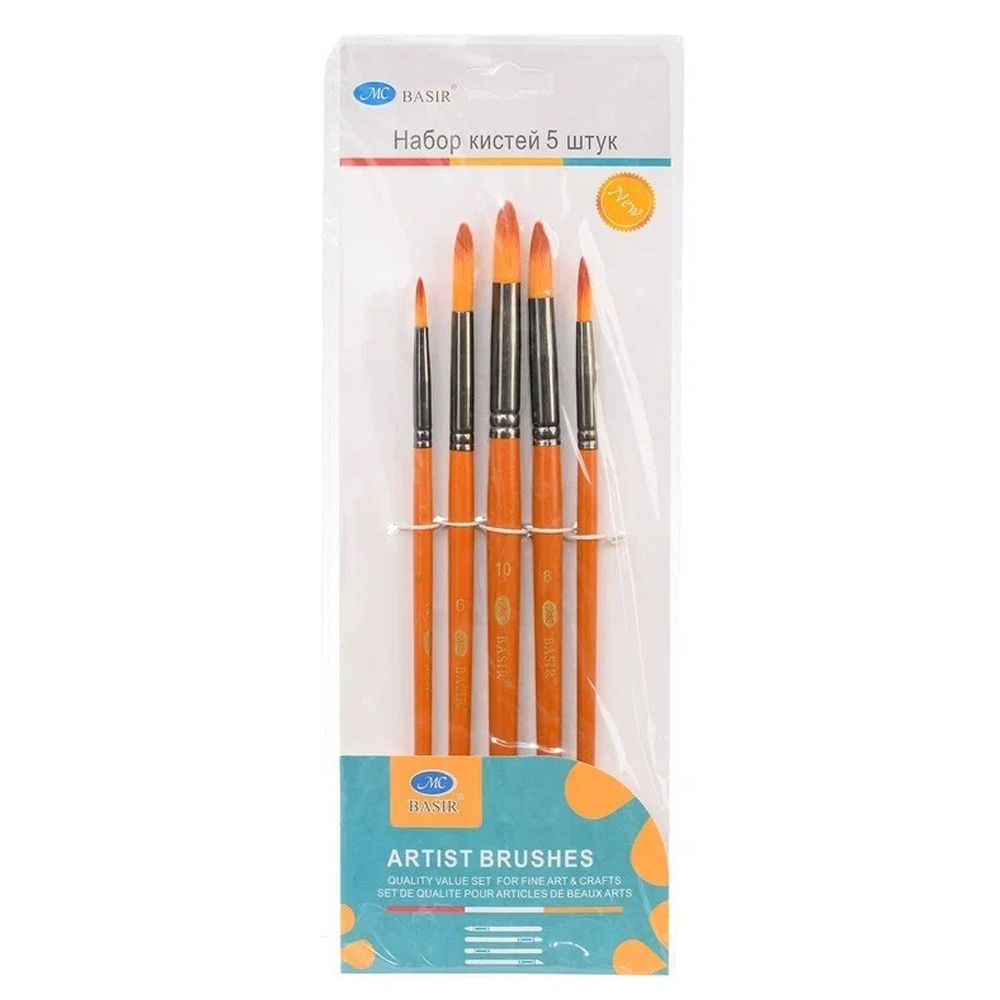 Набор кистей: состоит из 5 художественных кистей (круглые и плоские №2,4,6,8,10), изготовленных из нейлона. Количество наборов в коробке: 144 штук.