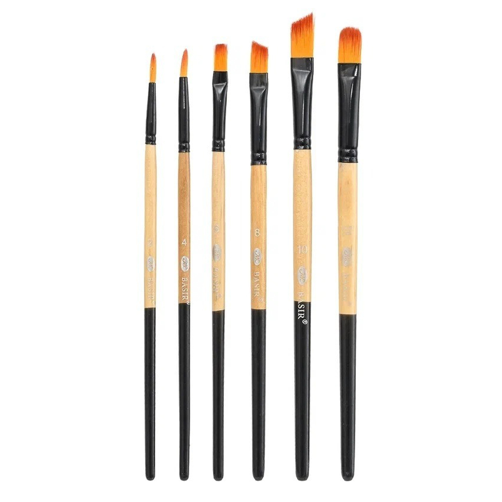 Набор кистей: состоит из 6 художественных кистей (круглые и плоские), изготовленных из нейлона. Количество наборов в коробке: 144 штук.