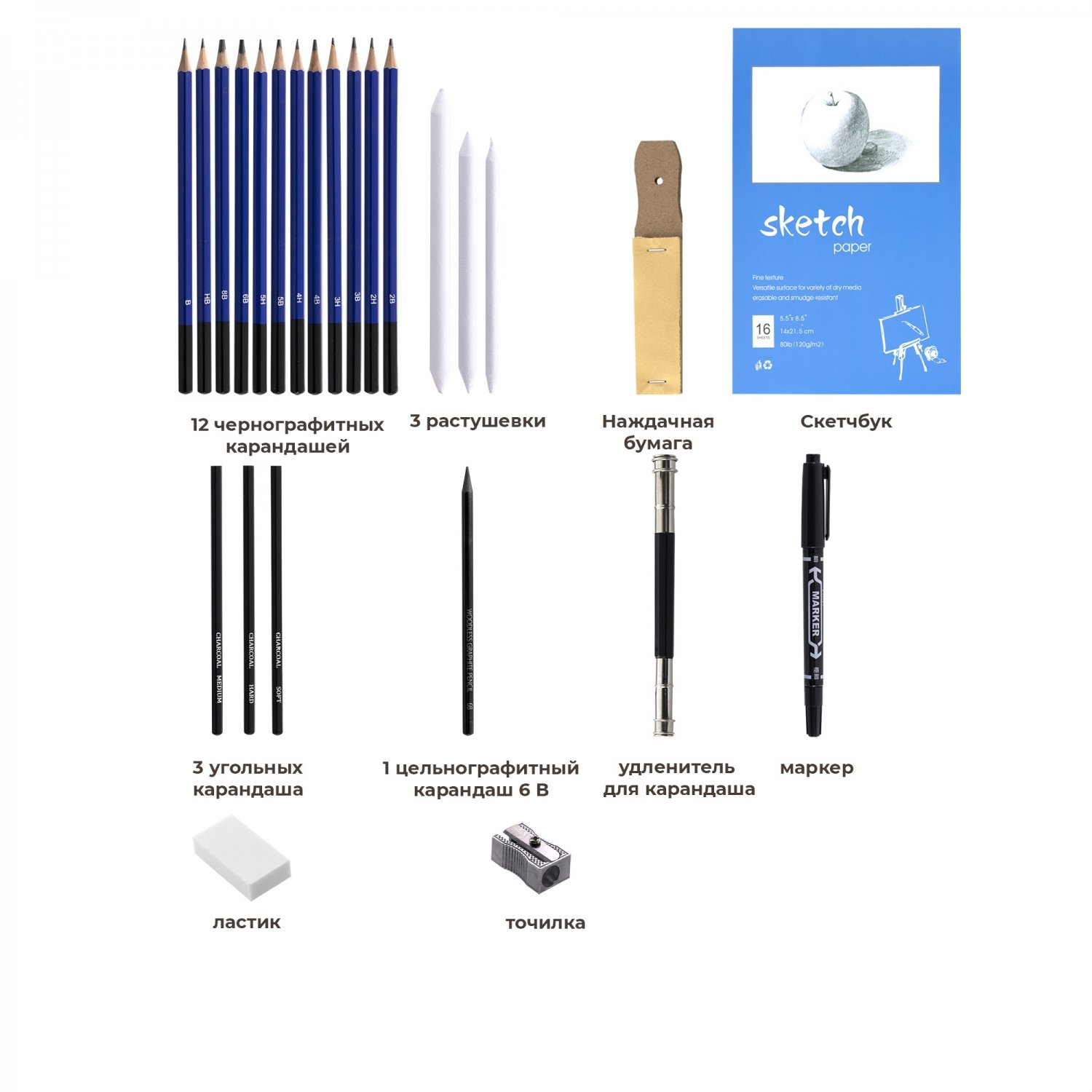 Представляем большой набор карандашей в пенале для художников. Будь вы профессиональным или начинающим художником, либо просто любителем, набор для рисования является необходимым инструментом для вашего творчества. Комплект состоит из 120 цветных и 12 чернографитных карандашей разной твердости и мягкости (твердые и мягкие 5H 4H 3H, 2H (Т), HB (ТМ), B , 2B, 3B, 4B, 5B, 6B, 8B (М)) , позволяя вам создавать рисунки с разными оттенками и текстурами. Мягкий графит позволит легко и плавно, тонко провести каждую линию, придавая вашим работам особое выражение и глубину. Эта канцелярия идеально подходят для рисования, черчения, создания макетов. В творческих наборах для скетчинга есть все инструменты для рисования: растушевки, наждачная бумага, угольные карандаши, графитовый (монолит) карандаш, металлическая точилка, ластик, 2 сторонний удлинитель - держатель, скетчбук. Канцелярские художественные товары в портативном пенале на замке