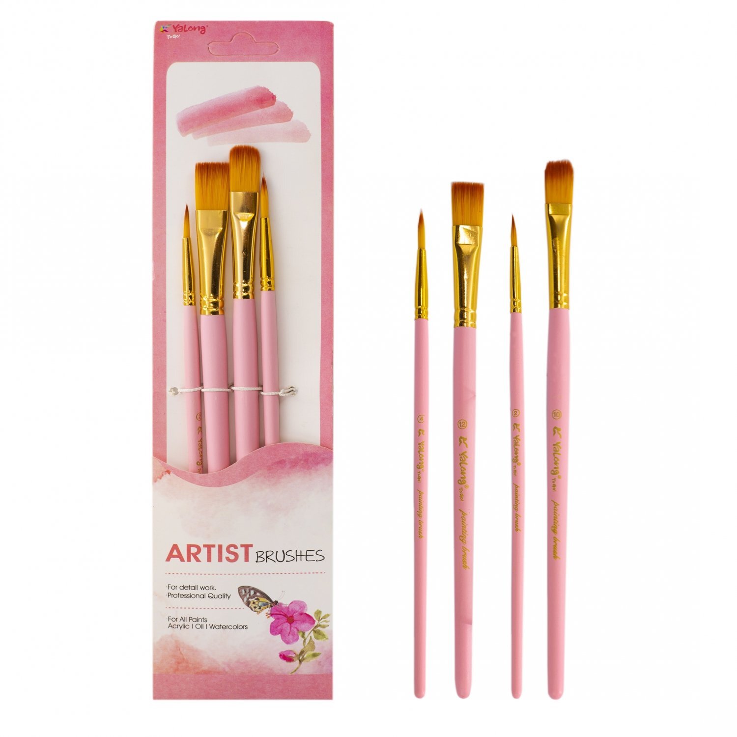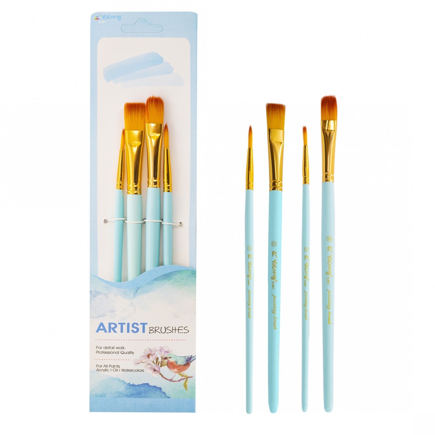Кисть для рисования Basir художественная, нейлон, плоские, № 2,4,10,12, чёрный корпус, набор из 4 шт