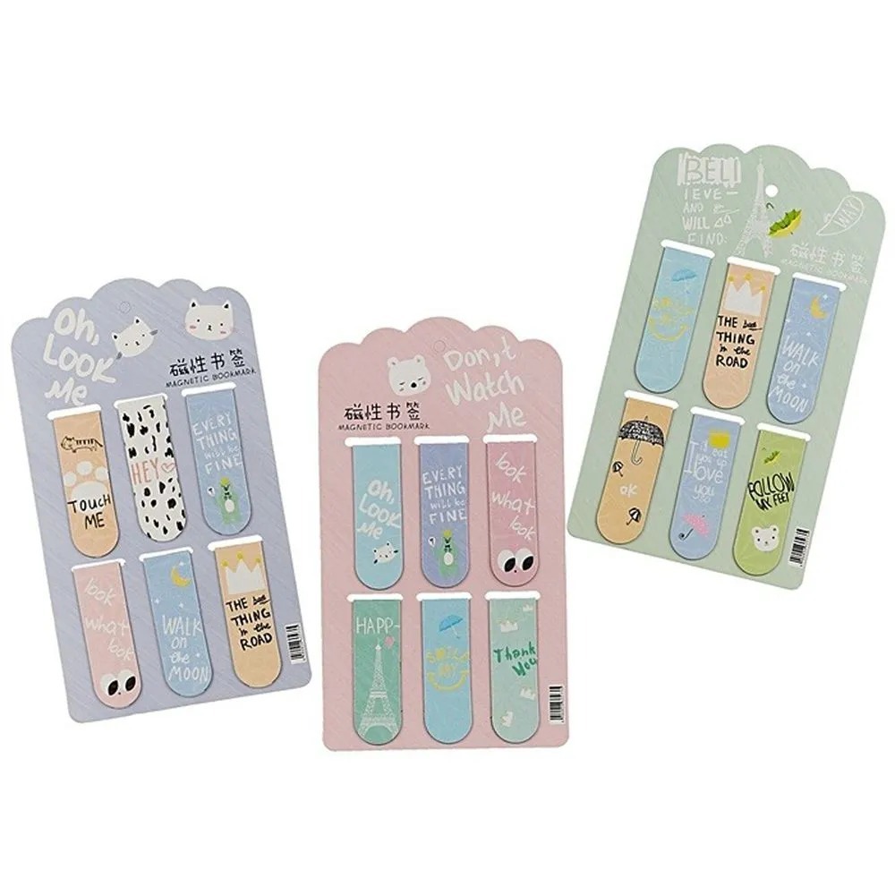 Каждая фигурная магнитная закладка прямая с закругленным углом и имеет симпатичный дизайн с изображением различных надписей и милых животных, что делает ее не просто практичным, но и милым аксессуаром.