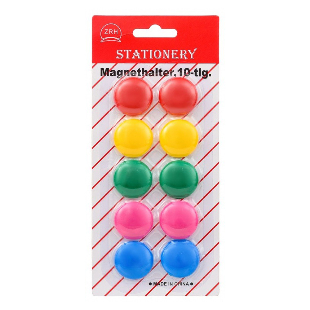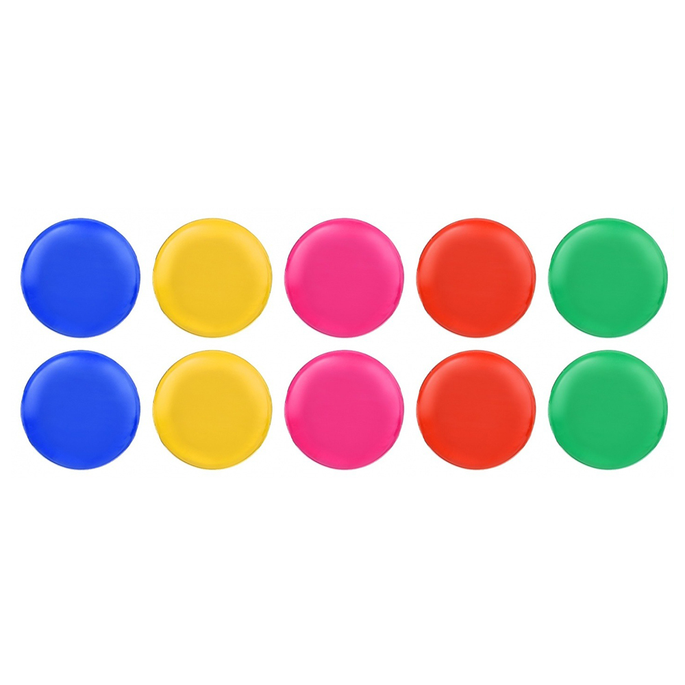 Набор магнитов: цветные, круглые /диаметр 30 мм/, 10 штук, в блистере с европодвесом.