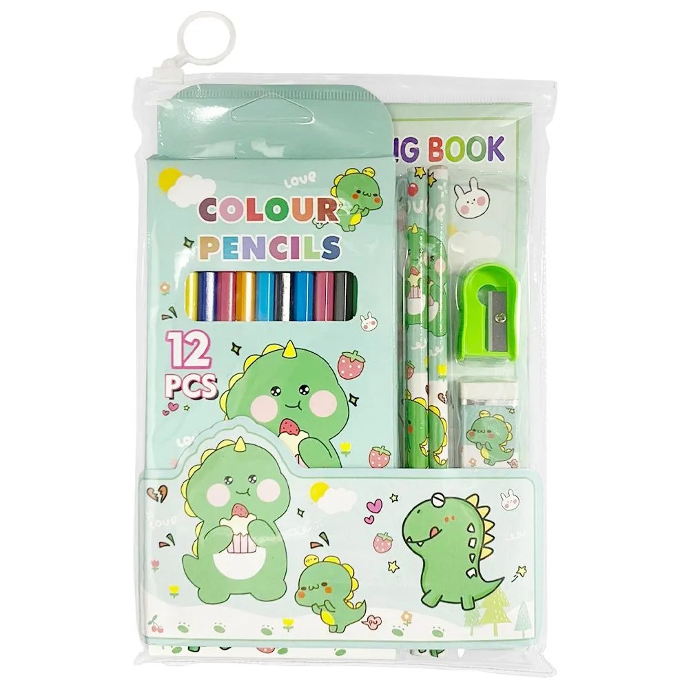 Представляю вам набор школьный, который станет незаменимым помощником вашему ребенку во время учебы и творчества. В этом наборе вы найдете все необходимое для рисования и письма, а также приятный бонус в виде дизайна милого динозаврика!