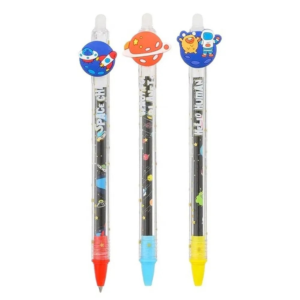 На колпачке ручки со стираемыми чернилами есть пластиковый клип - игрушка в форме планеты.