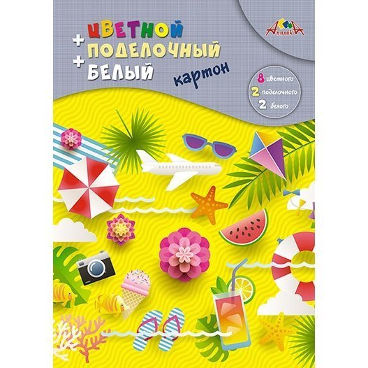Набор цветного и белого картона Апплика, А4, 12 листов, 9 цветов, мелованный, гребень, "Белый мишка"
