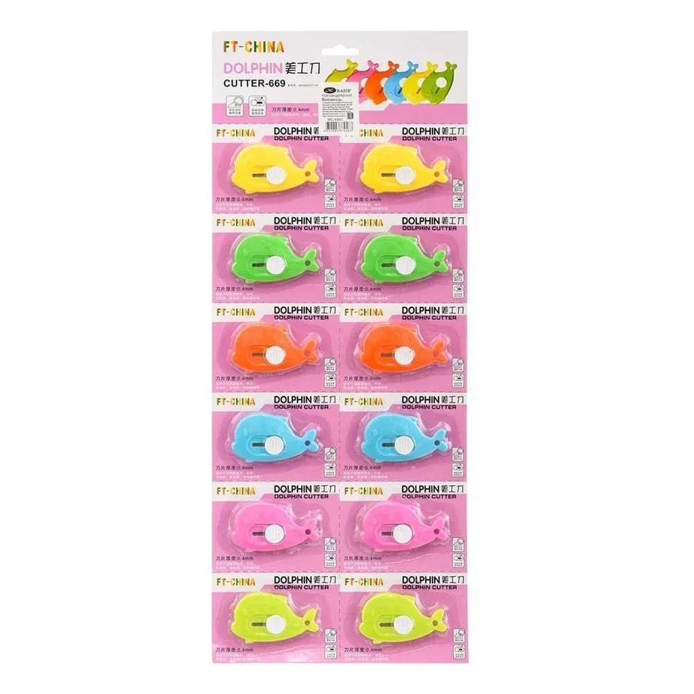 Нож канцелярский детский: "ДЕЛЬФИН"; цветной корпус в форме дельфина, размер 6,5 см, в пластиковой упаковке на подложке.