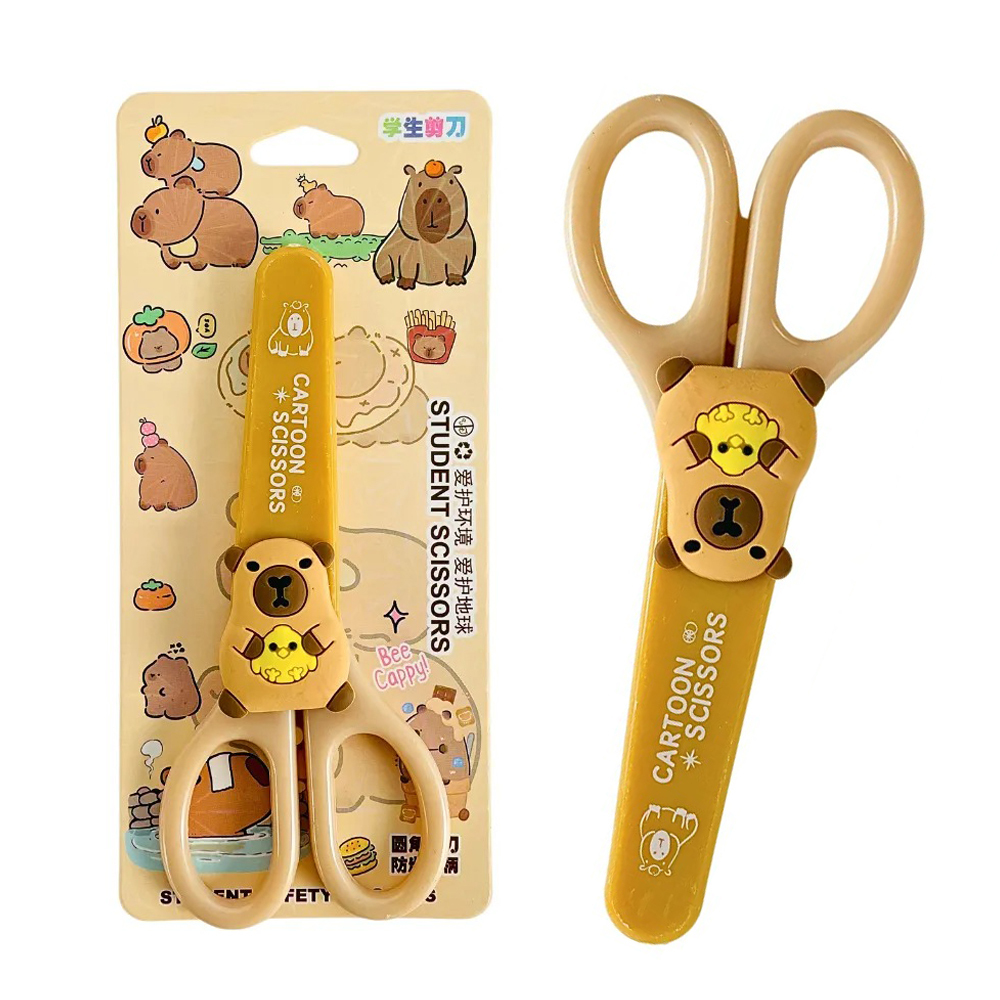 Ножницы: "КАПИБАРА"; детские, в пластиковом чехле, цветные /ассорти/, с пластиковыми ручками, длина ножниц 13,5 см, лезвие 6,5 см, в блистере. В коробке: 360 шт.