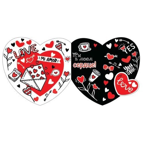 Открытка - мини двойная, с термографией, "My Love", 86х167 мм, с текстом (милому чуду), форма-сердце