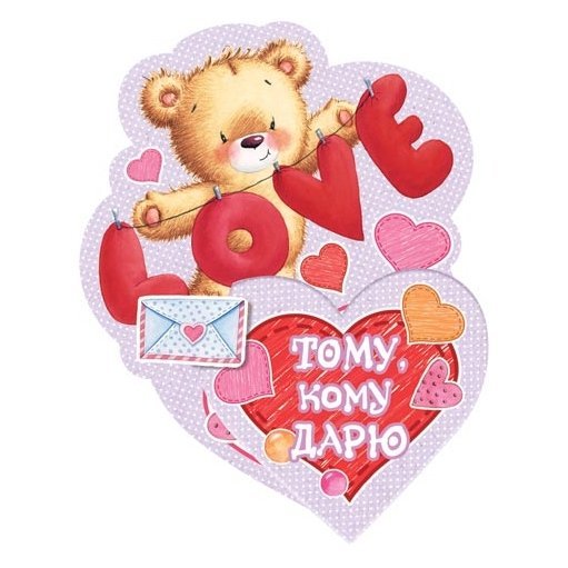 Открытка - мини двойная, с термографией, "My Love", 86х167 мм, с текстом (милому чуду), форма-сердце